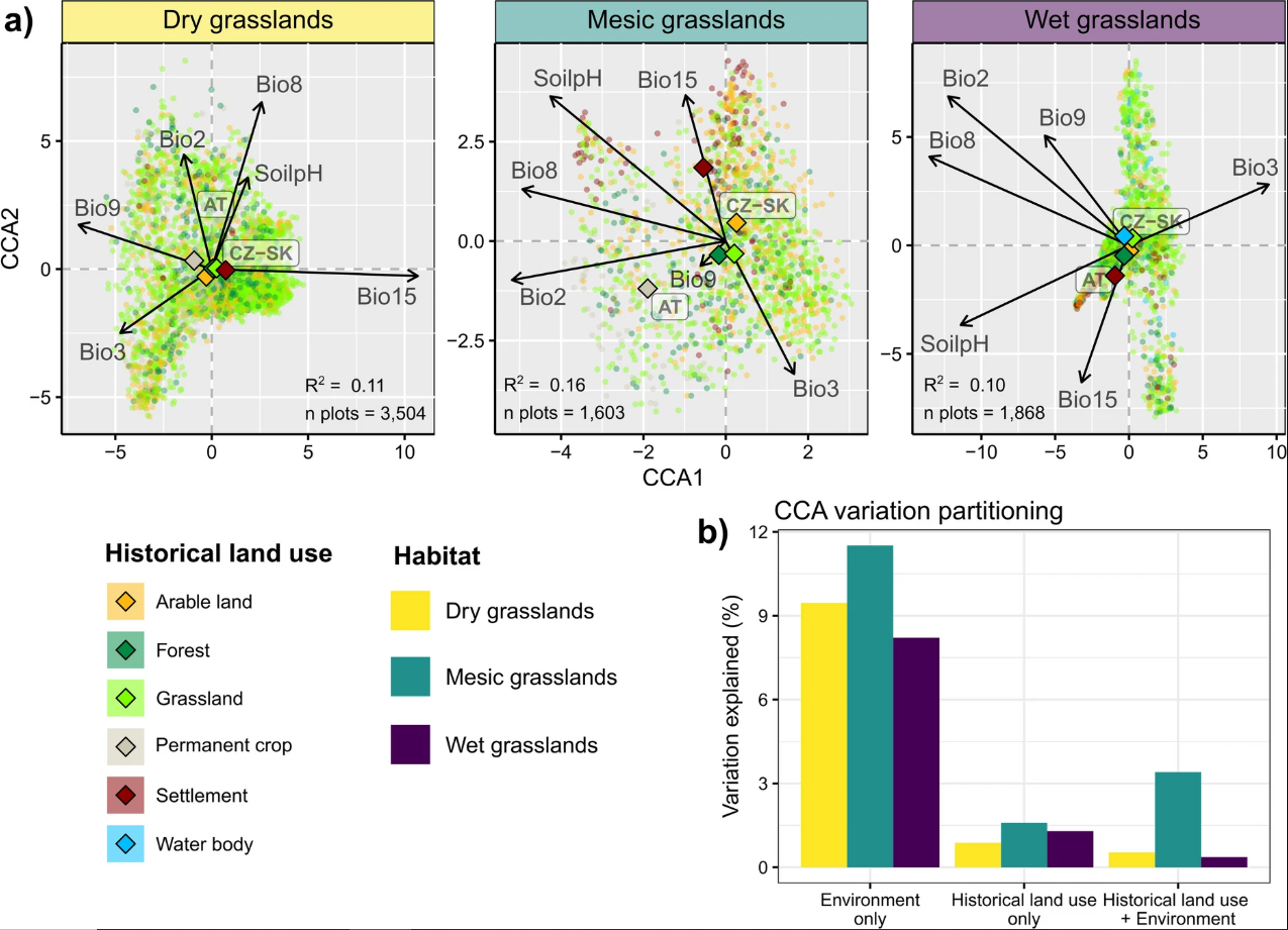 Častým předpokladem je, že historické využití krajiny může ovlivnit současnou diverzitu rostlin ve vybraných společenstvech, jejich složení a funkce. Proto jsme testovali, jaký může mít dopad historické využití na středoevropské trávníky z hlediska jejich druhové diverzity, složení a ekologických preferencí. Pro testování jsme využili téměř 7000 vegetačních snímků z česko-rakouského pomezí a data krajinného pokryvu získaného z historických topografických map z poloviny 19. století.